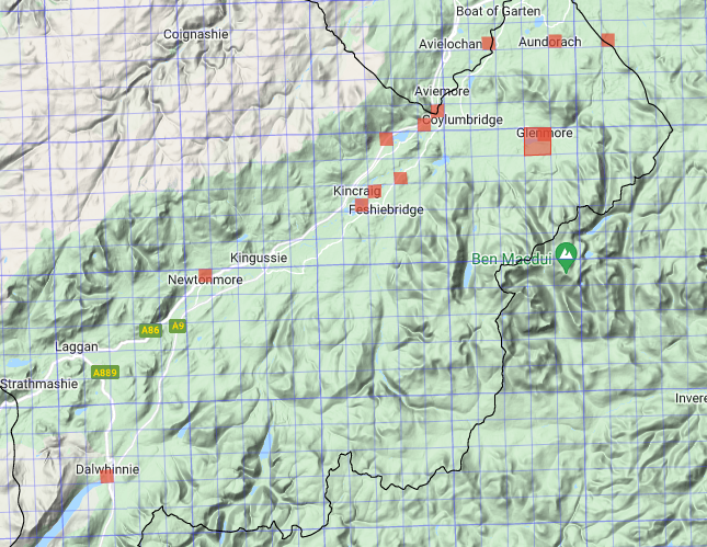 Each of the red bundles (probably the correct term is anthers) then splits and releases its pollen, seen as yellow grains. There is a lot of it, as even from my sample there was a little heap of yellow powder around the catkin. Why so much? Well, this tree relies on the wind, rather than insects, to carry the pollen grains far and wide in the hope of landing upon a female flower of the same species. Unfortunately, this pollen may be doomed as there are no female Western Balsam Poplar trees anywhere in Newtonmore. Indeed, the nearest trees are recorded in Kincraig and I don't know whether they are male or female. I did go and have a look but they are still bare.